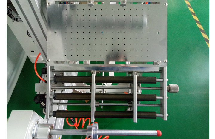 拉料機構通過基恩士電眼與施耐德伺服電機以及直驅膠輥配合定位麥拉走料位置;